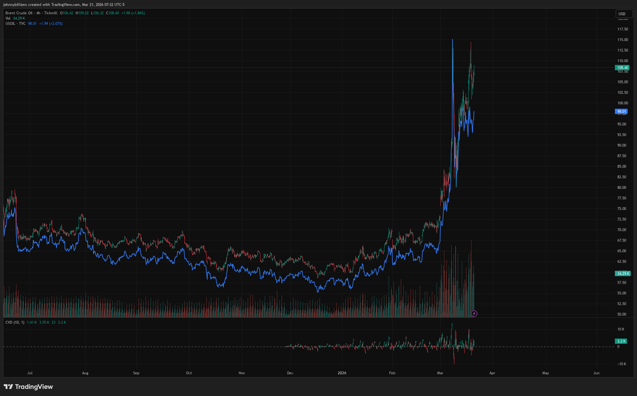 Now, take a look at the oil price, it has surged from $60 dollar level to as high as $115, a 91% rise.