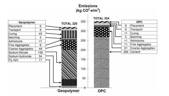 4. Turner, L. K., & Collins, F. G. (2013). Carbon dioxide equivalent (CO2-e) emissions: A comparison between geopolymer and OPC cement concrete. Construction and building materials, 43, 125-130.