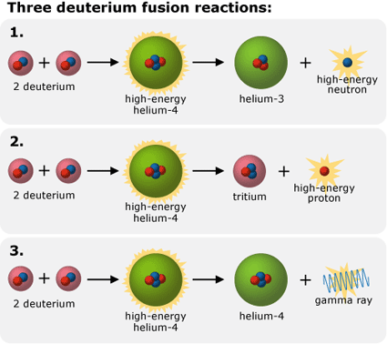An example of fusion reaction would be the deuterium-tritium: