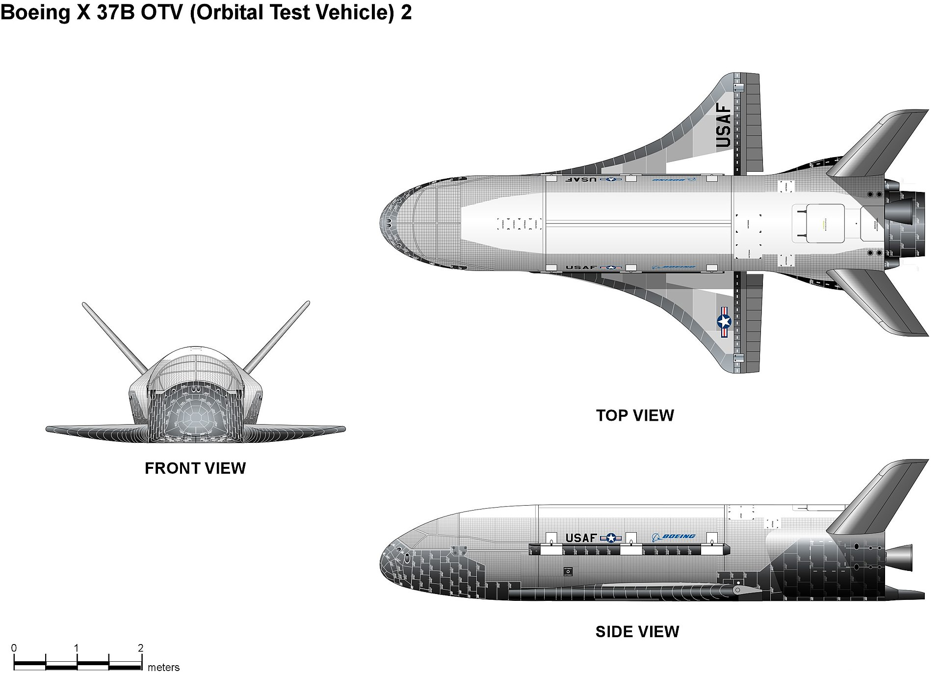 The X-37B uses a hypergolic propellant system of nitrogen tetroxide and monomethyl hydrazine. It also uses solar cells and lithium-ion batteries provide power for the onboard systems to power the onboard digital systems.