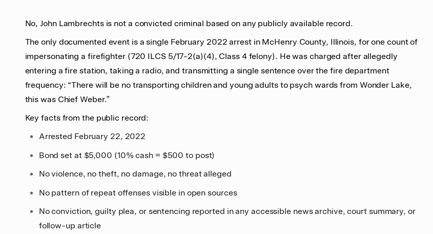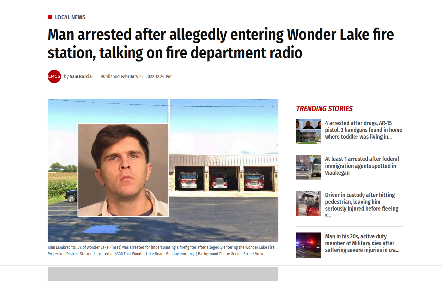 The Wonder Lake Fire Department then works with McHenry County Sheriff after this phone call to indict me forcing me into the court system.